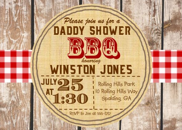 Design 2728 Woodgrain BBQDaddy Shower Invitations